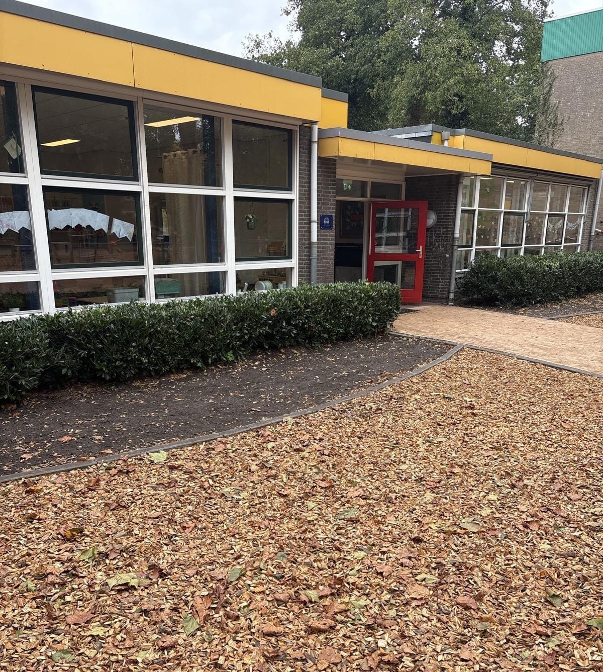 Het schoolplein is vergroend. Het plein is opnieuw ingericht waarbij het verhard oppervlak verkleind is, waardoor meer regenwater weer terug gegeven kan worden aan de natuur.